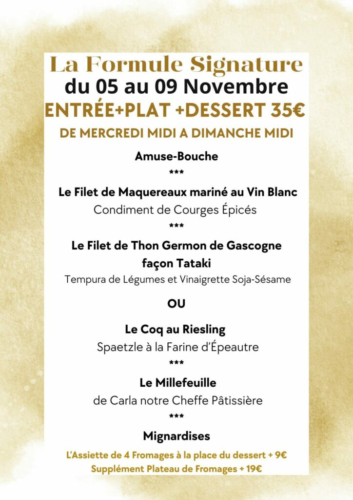 Nous proposons avant tout une cuisine généreuse, Festive, délicate et novatrice, dans le respect du Terroir Qui fait l’âme de notre Alsace.